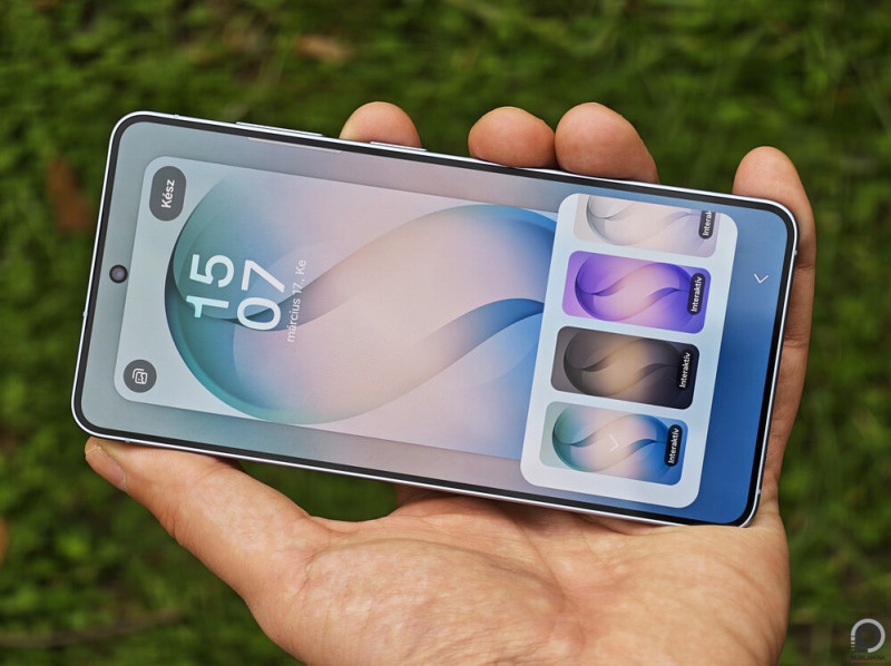 Nem kell napokig együtt élni vele, azonnal nyilvánvaló, hogy működik a Samsung koncepciója, vagyis 6” körüli képátlóhoz a legkecsesebb házat biztosítani, és bár 149,6 x 71,7 x 7,2 milliméteren és 167 grammon papíron nem sokkal apróbb, mint a Xiaomi 151,1 x 71,8 x 8,1 milliméteren és 191 grammon, pont annyival kisebb, hogy könnyebb legyen egy kézzel használni és észrevétlenebb hordozni. Az is igaz, hogy 6,2”-ről 6,3”-re váltva valamivel terebélyesebb 146,9 x 70,5 x 7,2 milliméteres elődjénél, ám ez egymás mellett nekem annyira nem tűntfel, az iPhone 17e-nél is kisebb térfogattal pedig nincs ma kompaktabb új csúcstelefon a piacon.