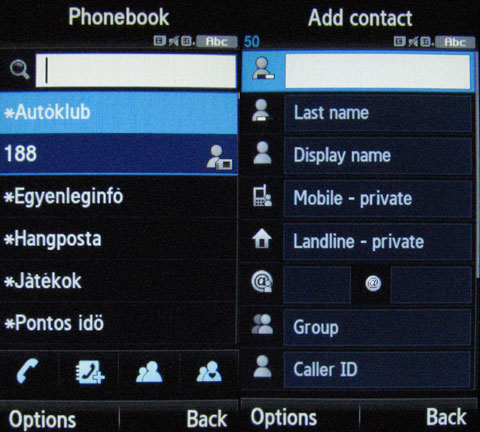 We can also access the menu by poking the circle icon between the call handling touchkeys. There is another solution: the hotkey on the right of the phone brings up a cross-shaped graphic, the four stems of this activate different functions, while its center also takes us into the main menu.