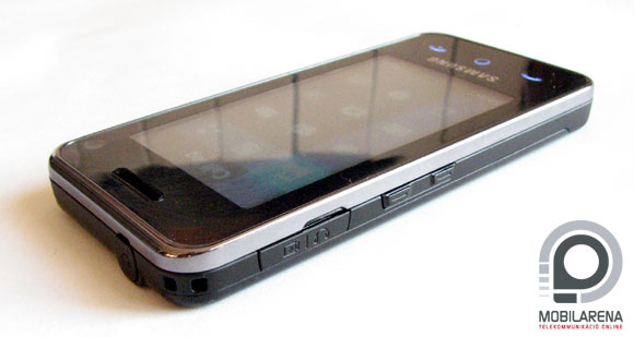 Some real buttons have made their way to the sides of the F490. (Hmm, how would it be using touch-controlled buttons over here too?) On the left side we can find the volume control buttons, over this the small door of the usual Samsung data connector is placed. The more pleasant things are on the right side, here we can find, close to the corner, a slider, which locks the screen when pulled down, but it can only be pushed up temporarily, as it snaps back to its central position when we let go of it. The reason for this is that, when kept pushed up it results in the handset being turned off.