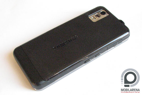 There is only one thing on top of the phone, but this is something very joyful: a standard, 3.5 mm jack connector is sitting here, protected by a small rubber plug. The back of the phone is quite poor, until we take a closer look at the camera banished to the corner: 5 megapixel is the text written on it, hm, with this the F490 supersedes the F700 and practically becomes an opponent for the LG Viewty.