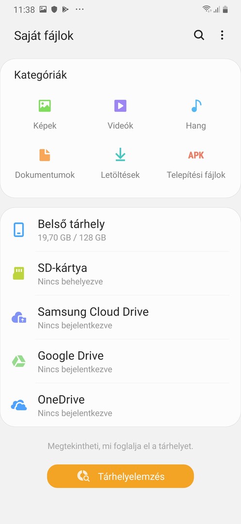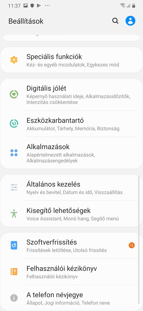 Az alaprendszer a 9.0-s Android, erre öntötte rá a Samsung a meglehetősen friss, One UI nevű kezelőfelületét, amellyel már az S10 készülékcsalád tagjainál találkozhattunk. Erről írtunk sokat (itt), röviden az a lényeg, hogy egy szellős, jól áttekinthető, jól testreszabható felületről van szó, amely egy csomó helyen igyekszik az egykezes használatot segíteni azzal, hogy a navigációs lehetőségeket a kijelző alsó felére költözteti. Van néhány extra benne (éjszakai mód, amely sötétre rakja a hátteret, vagy éppen a Digitális Jólét, ami a felhasználást monitorozza), jár hozzá témaáruház és alkalmazásbolt is.