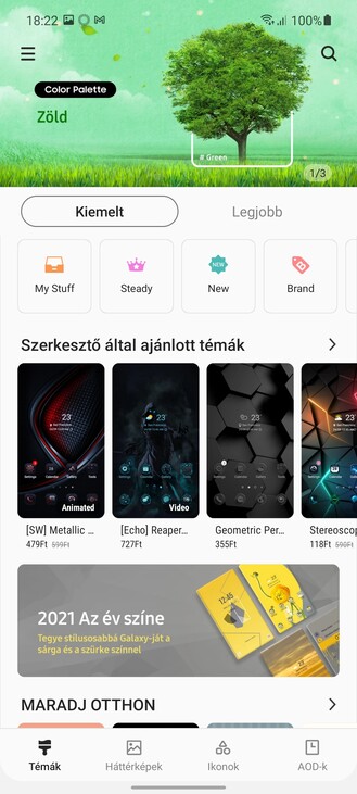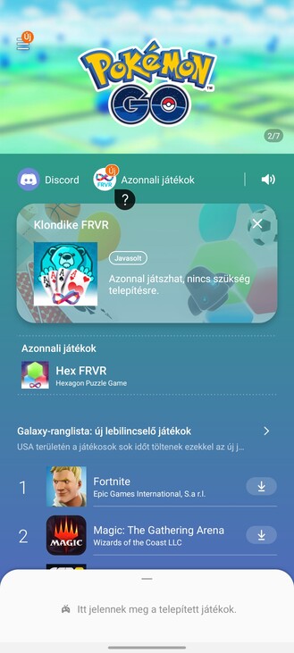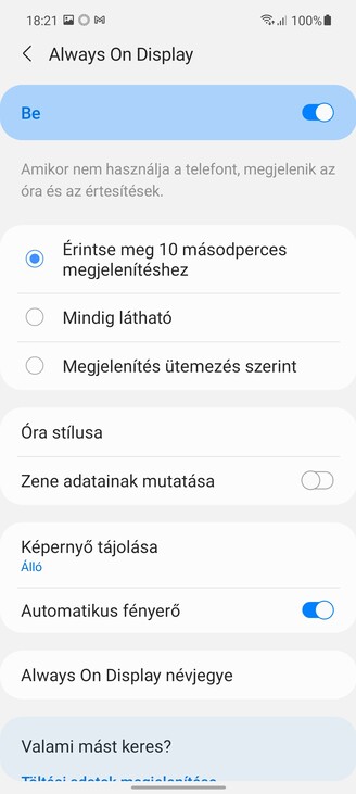 Ami furcsa, hogy a Samsung saját zenelejátszója nincs fent alapból, persze ezt egy mozdulattal be lehet szerezni a Galaxy Store-ból, de ez legalább annyira esszenciális alkalmazás, mint a dikatfon, vagy a fájlkezelő, amik viszont nem hiányoznak. Az always-on kijelzés viszont adott, ha már értesítési LED nincs, akkor ez kárpótolhatja a júzert, ráadásul nagyon sokféleképp lehet ezt is paraméterezni. Szintén megvan a Game Launcher, ahol a játékaink gyűlnek (és kérhetünk statisztikát is arról, hogy melyikkel mennyit foglalkoztunk), le lehet tiltatni az értesítéseket és persze kapjuk az arcunkba a különböző ajánlásokat a Galaxy Store kínálatából.