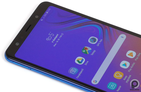 Fájdalmas visszalépés ez, a modellfrissítés az elődnél ráadásul szögletesebb lett. Cserébe dominánsabb a Super AMOLED képernyő az előlapon, még ha az alsó-felső kávából valamennyi meg is maradt. A 159,8 x 76,8 x 7,5 milliméteres és 168 grammos ház 6”-es, 18,5:9 arányú Infinity Display panelt fog közre, 1080 x 2220 pixel felbontáson. Ez tűéles képet jelent kirobbanóan élénk, avagy pontosan kalibrált és visszafogott színekkel, kitűnő betekintési szögek mellett. Adott továbbá minden samsungos nyalánkság, így a napfény alatti, remek fényerő vagy az éjjel kellően halovány panel, olvasási móddal. Nem hiányozhat a mindig aktív kijelző sem, az érintési érzékenység pedig ezúttal is hibátlan, a rezgéses visszajelzés ugyanakkor csak közepes erejű.