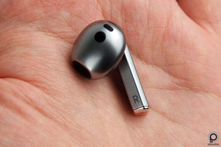 A dobozban nincs is más a fülhallgatón és a hordozó tokon kívül, ami olyan szempontból furcsa, hogy a Samsung korábbi félig nyitott próbálkozásaihoz még jártak gumis kiegészítők, amivel a használó állíthatott a füles illeszkedésén. A Buds3 a 18,1 x 20,4 x 31,9 milliméterével és 4,7 grammjával nem nagy és nem is nehéz, de kialakítása miatt ha valakinek nem passzol a fülébe, akkor nem lesz kényelmes viselet. A műanyag ház pedig a verejtékre sem reagál jól, ha nem tökéletes az illeszkedés, elkezd csúszkálni. Számomra a bal tökéletesen kényelmes volt, a jobb fülem picit nagyobb, ott már folyamatosan javítgatni kellett a Buds3 helyzetét. A tok ugyanúgy néz ki, mint a Pro modellé, tehát a fedél átlátszó, a füleseket pedig 180 fokban meg kell fordítani kivételük után, hogy a fülünkbe rakjuk.