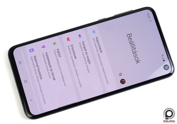 A megjelenítés minősége abszolút kifogástalan, bár az S10e kijelzője maximum FHD+ felbontásra képes. Ami mellesleg elég jót tesz a grafikus teljesítménynek. Ez még így is 438 pixelt jelent egy hüvelyken, a gyakorlatban pedig határozott és tűéles karakterrajzolatot. A betekintési szögek maximálisak, a fényerő és a színhőmérséklet állandó. A kontraszt számszerűleg végtelen, a maximum fényerő pedig széles skálán mozog, extrém megvilágítás esetén elvileg akár 1200 nit is kijön a panelból; bár, nekünk csak 800 körüli értékeket sikerült mesterséges körülmények között előállítani, van tartalék a rendszerben.