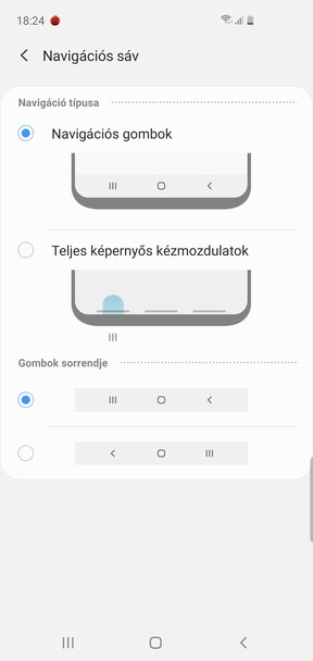 A navigációra is kapunk még alternatívát. Azon felül, hogy a hagyományos navigációs gombok sorrendje személyre szabható, el is tüntethetjük őket. Ilyen formában csak vékony vonások jelennek meg a kijelző legalján, amelyek alig foglalnak helyet, a választott sorrend megmarad, érintés helyett viszont felfelé kell simítani őket. A navigációs sáv és gyorskapcsoló panel is lerántható simítással, a főképernyőkön bárhol lefelé-mozdulattal keríthető elő. A panel tartalma és a kapcsolók elrendezése szintén variálható.