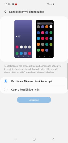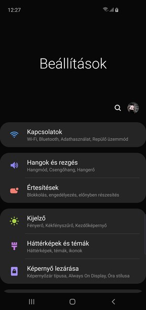 Az éjszakai mód főleg sötét rendszertémát jelent, ami kizárólag a Samsung alkalmazásokat és a rendszert érinti, amit már One UI-nak hívnak. Mármint a rendszert. A logika és az elrendezés változott, meg az ikonkészlet, ami szubjektíve nekem pont nem tetszik, de a megnyúlt kijelzőarányhoz alkalmazkodó felületek azért nagyon hasznosak. Elfér még némi finomhangolás, maradtak tartalmak a felső harmadban, amik nyugodtan lehetnének lejjebb is, de ezt biztosan egységesítik idővel. A legtöbb interaktív felület viszont kézmagasságba került, valóban kényelmesebb kezelni.