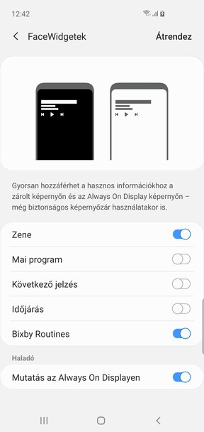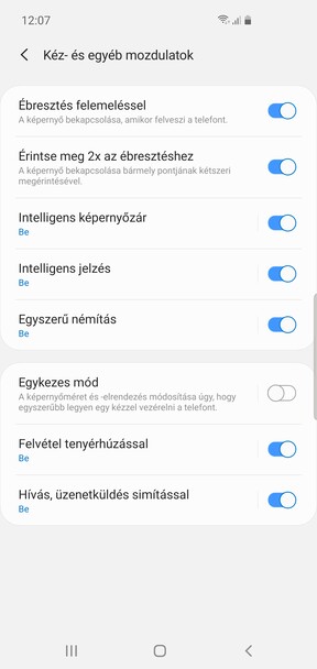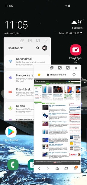 A megszokott funkciók is maradéktalanul elérhetők, plusz a sík kijelző ellenére van Edge panel is. Az alkalmazásváltó elrendezését már nem módosíthatjuk, egymás mellett sorakoznak a kártyák, alulra pedig a legutóbb használt appok ikonjai kerülnek. Az alkalmazások természetesen megnyílnak osztott nézetben, illetve lebegő ablak formájában, amelyek mérete és pozíciója igény szerint alakítható. Az intelligens megoldások is ismerősek: amíg nézzük, nem kapcsol ki a kijelző; rezeg az eszköz, ha megemeljük és van új értesítésünk, ami értesítő LED hiányában praktikus, bár ott az Always on Display is, immár színes (de szerintem kevésbé figyelemfelkeltő) ikonokkal.