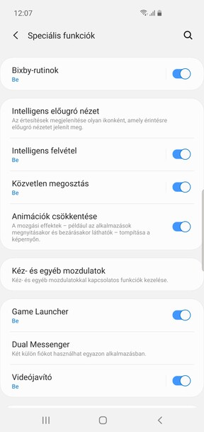 A felhasználói felület is megújult, ami nagyjából ugyanolyan, mint az S9, S9+ és Note9 esetében, de vannak olyan opciók, amelyek csak az S10 szériában érhetők el. De már semmiben sem vagyunk biztosak: többen jelezték, hogy az újdonságnak számító Bixby-rutinok S9-en és S9+ már működnek, a Note9-en viszont se híre, se hamva. Mindenesetre az S10e egy rakás rutint kínál, amelyek adott feltételek teljesülése esetén aktiválnak egy sor funkciót és beállítást. Mondjuk este kilenctől automatikusan csökkenti a fényerőt, aktiválja a szintén új éjszakai módot, bekapcsolja a kékfényszűrőt és a ne zavarjanak üzemmódot, vagy bármit, amit mi ilyenkor szeretnénk.