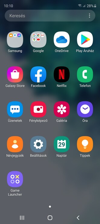 Az alkalmazáskínálatot nem vitték túlzásba, sőt. Pedig a Samsungnak egy rakás kiváló gyári megoldása van, kiváltképp a böngésző, ami jelenleg a legkomplexebb alternatíva a piacon. Mindenképpen érdemes az alap alkalmazásokat a gyártói kínálatból összeszedni, de legalább megtekinteni, mert ab start még egy számológépünk sem lesz. Ezekről itt írtunk bővebben. Van viszont egy szerény Google csomag, Bixby rutinok, Reminder néven emlékeztető, naptár, óra, OneDrive (ami 2021 júliusától átveszi a Samsung Cloud helyét, kivéve a rendszerbeállítások és biztonsági mentések esetében), GameLauncher, Netflix és Facebook.