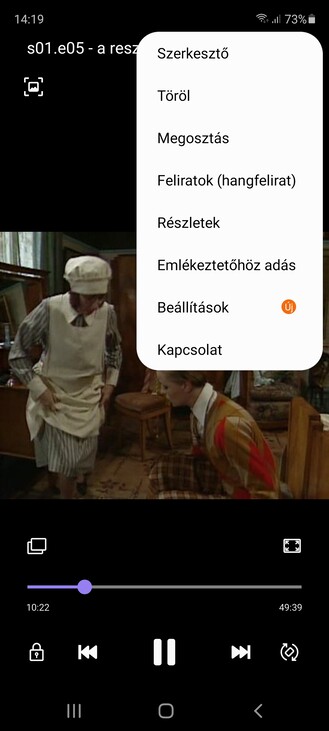 Videókönyvtár ugye nincs a gyári alkalmazáskínálatban, de galériából vagy fájlkezelőből megnyitva a Samsung saját megoldása dolgozik korrekt formátumtámogatással és egy rakás lehetőséggel. Kezeli a hangsávokat, paraméterezhető a feliratok megjelenítése, van kisablakos nézet és videószerkesztő, de készíthetünk képernyőfotót és GIF-et is menet közben. A HDR10+ kijelzőn azért élmény a tartalomfogyasztás, a hang pedig sztereóban szól (Dolby Digital, Dolby Digital Plus).