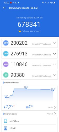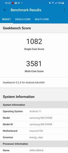 | Benchmark | Samsung Galaxy S21 | Samsung Galaxy S21+ | Samsung Galaxy Note20 Ultra | Huawei Mate 40 Pro | Apple iPhone 12 64 GB | Xiaomi Mi 10 Pro |