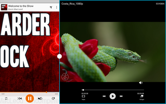 A videolejátszó a H.263, a H.264, Mpeg4 és Xvid kódolásokkal megbirkózik, az AC3 hanggal, a feliratokkal és a DivX-szel viszont nem. Ezeket egy BS Player meghajtja. 1080p-ig nem gond a lejátszás, és ekkora képernyőn kényelmes mozizni, a 4K-s tesztfájl viszont kifogott az erőforrásokon. A klipeket ablakos módban is le lehet játszani. A Google Play Zene minden általunk bevetett formátumot lejátszott, a WMA-t és a FLAC-ot beleértve. Az állományok előadók, albumok, dalok, műfajok és listák szerint rendezhetők. A Play Zene előfizetéses szolgáltatást is nyújt. Elérhető SoundAlive néven hangszínszabályzó, jó pár effekt, UHQ hangzásjavítás és Adapt Sound titulus alatt a hangképet tovább lehet csiszolni. Az FM-rádió viszont kimaradt.