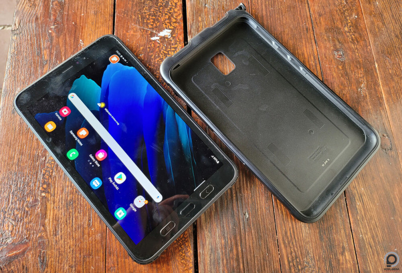 Ránézésre is látszik, hogy a Tab Active3 nem egy szokványos táblagép. Nekem elsőre így is megdöbbentő méretűnek tűntek a kávák, amelyeken egy többgyermekes család is megebédelhet, kissé túlontúl bumfordinak éreztem a gépet körülölelő védelmet, hogy aztán kiderüljön, hogy le lehet vetkőztetni a készüléket és igazából egy igen masszív, elég merev és az S-Pent is tartalmazó tokban van a tablet, amit némi küzdelemmel le lehet hántani. Így sem lesz kicsi és filigrán a Tab Active3, de eggyel közelebb kerülünk ahhoz a táblagépes forma- és arányvilághoz, amit megszokhattunk.