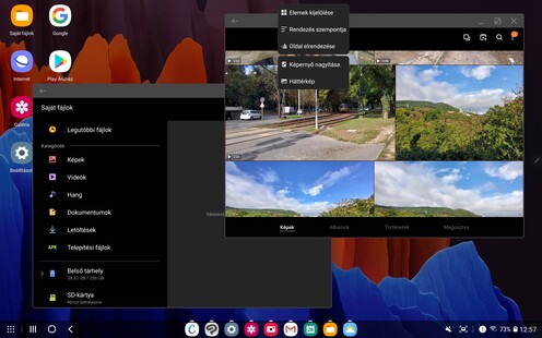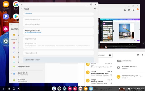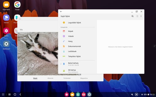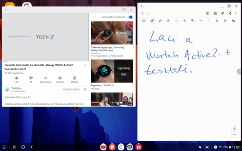 A rendszer Android 10-re épül, meg fogja kapni a 11-es verziót is (ahogyan a 9-esen startolt Tab S6-ra is megjött a 10-es), a felhasználói felület viszont ezúttal is kétféle. Egyrészt adott a One UI, rögtön a 2.5-ös, azaz a jelenlegi legfrissebb változat, annak összes újításával (még a Pro videós mód is megvan), másrészt pedig elérhető a DeX. A tapasztalat az, hogy ha valaki alapvetően tartalomfogyasztási eszközként tekint a Tab S7-re, az általában marad a One UI mellett, mert szellősebb, könnyebben kezelhető ujjbeggyel, kevésbé lehet elveszni a funkciók és az ablakok között, ha viszont irodai jellegű felhasználás felé tendál a júzer, akkor inkább a DeX jön be az összes Office alkalmazással, lebegő és átméretezhető ablakokkal, windowsos billentyűparancsokkal és alapvetően PC-s jellegű felosztással. A két mód között pár másodpercig tart csupán a váltás, a One UI felületről az értesítési tálcán találjuk a gombot, a DeX-nél pedig a bal alsó menü mögött van a kilépés. Bár minden váltásnál figyelmeztet a gép, hogy a nyitott alkalmazások nem biztos, hogy nyitva is maradnak, a gyári szoftverek általában gond nélkül működnek tovább.
