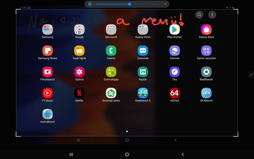 Akárcsak a legtöbb Samsung eszköznél, a Tab S7-nél sincs túltolva a gyári alkalmazáskínálat. És nyilván nincs eltérés ezügyben, hogy DeX, vagy One UI felületet használunk. A szokásos Google-szoftvercsomag mellett fent van az Office, a OneDrive és az Outlook, a Samsung diktafont, Bixby-t és AR-zónát ad hozzá a rendszerhez, plusz elérhetőek az S-Penhez köthető alkalmazások, mint a megújult Notes, amely már ferdén írt szöveget is tud digitalizálni, plusz a feljegyzések is mappákba rendezhetőek, valamint szinkronizálhatók a felhőbe. Itt állítható az ablak áttetszősége is, tehát lehet úgy is jegyzetelni, hogy közben látjuk a háttérben azt a tartalmat, amire szükségünk van (mondjuk egy előadásról egy videót). Adott a lehetőség képernyőképre való firkálásra is, szövegfordítás szintén működik a tollal. A PENUP app egy elég basic rajzprogram és kifestő, de gyereknek például nagyszerű lehet. Van Galaxy Store, ahonnan érdemes pár esszenciális appot lerántani (Samsung Music, csak hogy egy példát említsünk), a Galaxy Picks nevű mappában pedig további olyan szoftverek ülnek, amelyek a toll képességeit hivatottak kihasználni. Ez konkrétan három appot jelent. A Clip Studio Paint az egyik legfrankóbb grafikai program nem csak Androidra, hanem iOS alá is, a Photoshop alternatívájaként tartják számon, viszont a teljes funkcionalitás fizetős, bár fél évnyi próbaidőszakkal neki lehet állni az ismerkedésnek.A Noteshelf egy igen sokoldalú jegyzetelő alkalmazás mindenféle importálási és megosztási lehetőséggel, a Canva pedig egy iszonyú mennyiségű sablongyűjteménnyel dolgozó kreatív stúdió, ahol logót, közösségi médiás postokat, plakátot, szórólapot, inforgrafikát, meg tényleg minden elképzelhető dolgot össze lehet kattintgatni és aztán használni.
