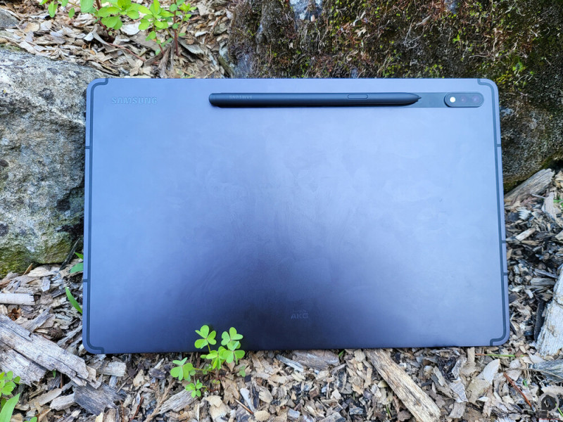 Azt leszögezhetjük, hogy a 14,6 hüvelykes Ultra ultra nagy, támaszték nélkül meglehetősen kényelmetlen, tömegben sem elhanyagolható, de a 12,4 hüvelykes panellel szerelt Tab S8+ sem nevezhető éppen kicsinek 285 x 185 x 5,7 milliméteres méretekkel és 562 grammos tömeggel. A legkezesebb darab nyilvánvalóan a 11 hüvelykes, 253,8 x 165,3 x 6,3 milliméteres, de picivel még mindig fél kiló fölötti (503 gramm) tömeggel rendelkező Tab S8.