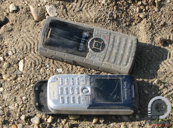 Then came the Toyota, which weighs 890 kilograms according to its license – after a few misses, we succeeded in driving through the phones turned with their displays upsides. The result is surprising, but we learnt that not only the M110, designed for this purpose, withstood the terrors, but the K300i is capable of a similar performance, the spectacle with the car caused no problems to the handsets, although the Sony Ericsson’s keypad wasn’t just as perfect as before the test. Nevertheless, all buttons functioned properly; they just needed some trickier handling.