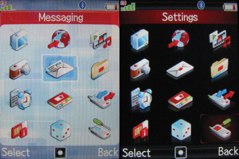 A készülék főmenüje 12 ikont kapott, amely így elsőre soknak tűnik, de a nagyméretű megjelenítőnek hála jól elkülönülnek egymástól. Tévedés ne essék, a főmenü live ikonokat kapott, azaz a piros szolgáltató saját képére szabta a szoftvert rendesen, ahogy azt kell. Vannak viszont témák, gyárilag kemény kettő, elvileg témaletöltésre is van mód, de egyelőre "invalid URL" üzenetet ad a böngésző, ha megkíséreljük.