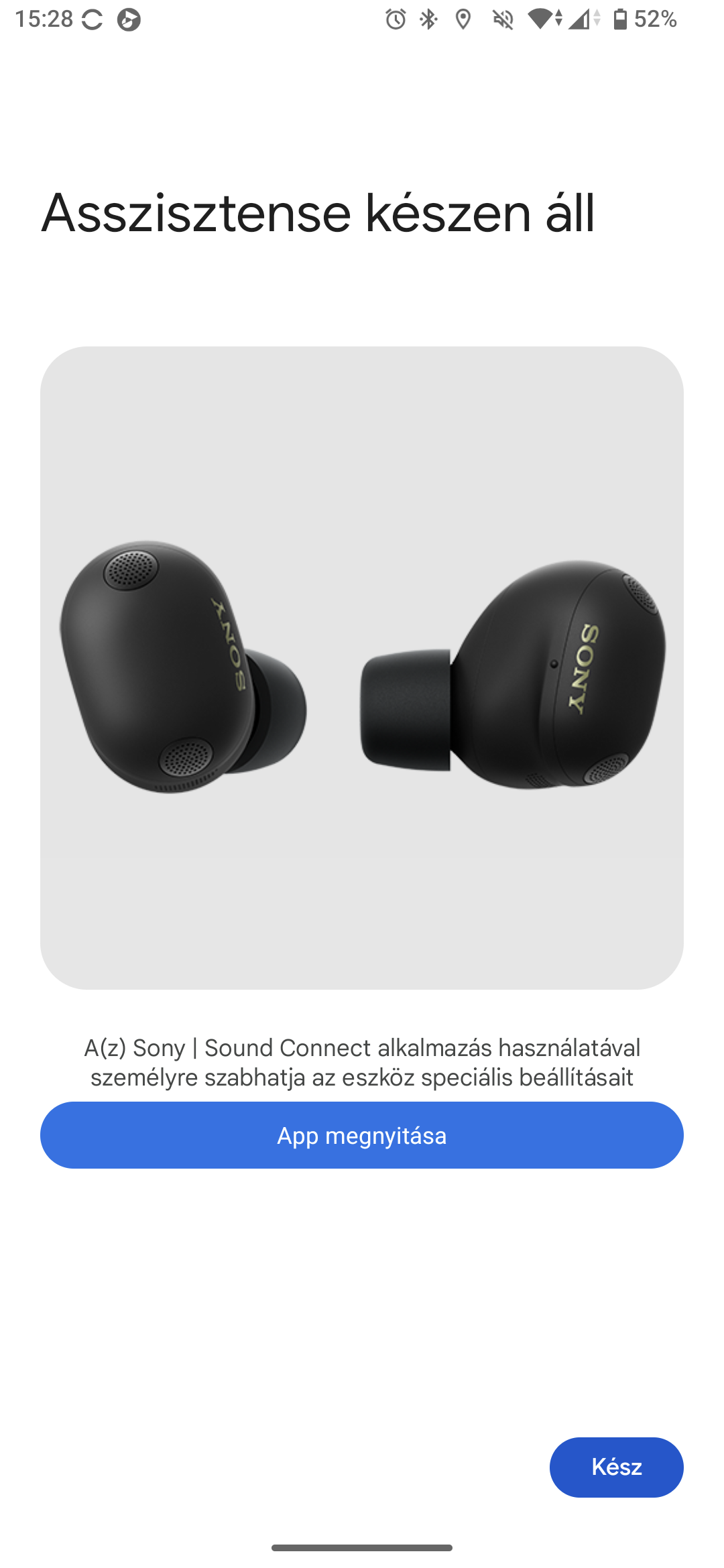 Ha ennél valamivel komplexebb tudású vagy egyszerűen más asszisztenst szeretnénk használni, akkor lehetőségünk van arra, hogy az érintőfelülethez rendeljük annak elindítását a Voice Assist Function of Mobile Device lehetőséggel. Ez iOS-en jöhet jól, ha valaki gyorsan el akarja érni a Sirit. Androidon van ennél kényelmesebb megoldás is, a Digital assistant funkció alatt. Viszont itt hiába volt már beállítva a Google Asszisztens és Gemini részére a hangmintám, hiába működött a telefonommal és a Google Pixel Buds fülhallgatókkal, az XM6 nem akarta az igazságot addig, amíg az apró Set up Digital Assistant gombra nem nyomtam, majd végigmentem a beállítási folyamaton. Ez max két perc, nem tragédia, és megéri, mert utána a „Hey, Google…” paranccsal már magyarul is lehet a Geminitől kérdezni.