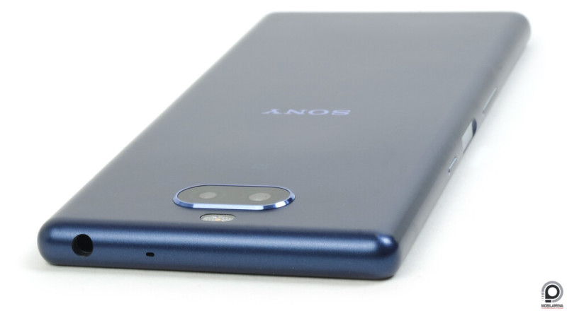 A beszédhangszóró, a fény- és közelségérzékelő és a 8 megapixeles szelfikamera is kényelmesen elfér a felső tartományban, alul viszont alig maradt holttér. Az arcfelismerés valahogy kimaradt. A hátlap nagyon egyszerű és elegáns, horizontális elrendezésben a felső harmadba került a 13 megapixeles főkamera és az 5 megapixeles segédszenzor, a LED segédfény és egy halvány NFC logó. A márkajelzés középen, az Xperia felirat pedig legalul, mindkettő alig észrevehető. Töltőkábelt alul Type-C portba dughatunk a monó multimédiás hangszóró mellett, fülhallgatót pedig a felső élen lévő 3,5 milliméteres jack csatlakozó fogad.