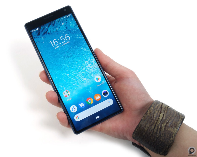 Tulajdonképpen ennyi kifogásunk van a kialakítással kapcsolatban. A szokatlan képarány miatt az egykezes kezelhetőség annak ellenére sem jön össze, hogy a készülék keskenysége miatt mindig ösztönösen megpróbáljuk; a SIM-tálca simán csak nagyon béna, a gombokkal meg nem tudjuk, mi volt a tervük, de nem igazán jött össze. Cserébe három oldalon közel kávamentes kijelzőt kapunk szenzorsziget és egyéb megjelenítőbe rondító síkidom nélkül. Ennek érdekében a Sony szinte teljes egészében meghagyta a felső kávát, amin legalább értesítő LED is van, ha már nem kifejezetten keskeny.