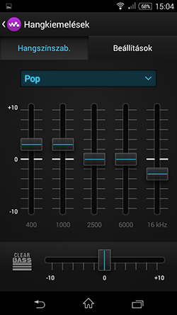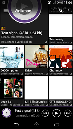 Az E4g zenelejátszója a Walkman, amely előadók, albumok, számok, mappák, listák és összekapcsolódott eszközök szerint is képes listázni a készüléken lévő vagy megosztott zeneállományokat, emellett egy lapozható albumborítós felületen is végigpörgethetjük muzsikáinkat. Az E4g hangszínszabályzót és ClearAudio+ névre hallgató hangminőség javító szoftveres megoldást is kapott, mi azonban ezeket a kiegyensúlyozott frekvenciaátvitel érdekében kikapcsoltuk.