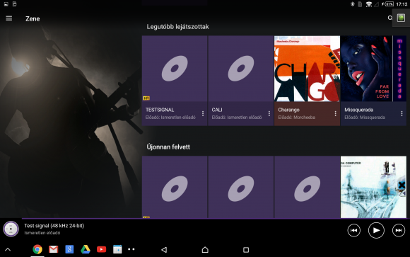 A multimédiás képességek kiemelten fontosak egy táblagép esetében, és szerencsére ezen a vonalon is erőset alkotott a Sony. A Zene app remek dizájnnal és hasznos tartalomajánlóval fogadja a felhasználót. Számainkat előadók, albumok, dalok, mappák, listák és kapcsolódott hálózatok szerint csoportosítja, ezen felül a podcast fájlokat is listázza és a Spotify is beépül a szoftverbe. Hasznos szintén, hogy a számokhoz dalszöveg, Wikipédia információ és YouTube videó kereshető. Akad látványos zeneszám vizualizáció, elérhető hangszínszabályzó, dinamikus hangkiegyenlítés és a ClearAudio+ zeneminőség javító algoritmus. FM-rádió is akad, amit füles csatlakoztatásával lehet működésre bírni.