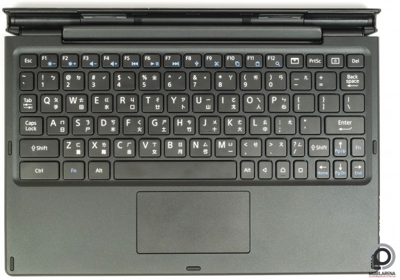 Nyilván egy nagyméretű tabletet ölbe véve, vagy az asztalon megtámasztva használ az ember, ha pedig valaki BKB50-es Bluetooth kiegészítővel vásárolta meg a Z4-et, pillanatok alatt laptoppá alakíthatja a masinát. Az Xperia Z4 Tablet ezen kiegészítője egyébként 500 mAh-s akkumulátort és tapipadot is kapott, a megszokott gombokon felül pedig megtalálható az androidos vissza, home és alkalmazásváltó billentyűje is. Ezen felül találni még gombot az értesítési panel előhívására, a képernyő felébresztésére és lezárására, valamint funkcióbillentyűt az olyan beállítások elérésére, mint a fény- vagy hangerőállítás, pont mint egy egy laptop esetében. A billentyűzet microUSB kábellel tölthető, azonban, mivel nincs elektronikus kapcsolat a táblagéppel, ezzel a porttal nem lehet tölteni a Z4 Tabletet, és fordítva sem működik ez a kiegészítő felé.