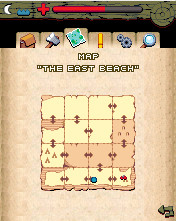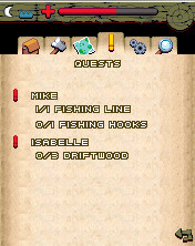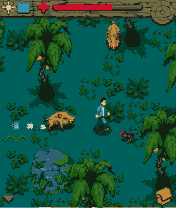 A begyűjthető cuccok listája igen bőséges. Számtalanféle halat, vadat, növényt, gyümölcsöt találhatunk, ezeknek természetesen eltérő áruk van, egy gally közel sem képvisel akkora értéket, mint egy füstölt vadmalac. Gyümölcsöket a favágás során szerezhetünk, három-négy darab szokott lehullani destruktív hobbink következményeként. A játék tehát a mai elvárásokhoz mérten összetett, ezért kiemelendő, hogy az in-game menük és az irányítás nem került túlbonyolításra, mindenre rá lehet jönni a nem létező manual nélkül is. A bal softkey megnyomásával a főmenü aktualizált változatát kapjuk, míg a jobboldalival a játékkal kapcsolatos funkciókat érhetjük el. Itt a képernyőfülek között horizontálisan lépkedhetünk, a vertikális mozgással az adott lap tartalmát lehet fel-le görgetni. Fülekből hat darab van, ezt kétszer is leszámoltam, tehát valószínűleg helyes az érték: az elsőn a batyunk tartalmát láthatjuk (inventory), a második a rendelkezésünkre álló eszközök helyes alkalmazását mutatja be (tools), ezután a térkép, majd az aktuális feladatok listája következik, a sort a már általunk ismert receptek és végül egy összesítés zárja. Utóbbi lista csak érdekességként került be, az összes összegyűjthető tárgyat tartalmazza felsorolva és százalékosan is megjelenítve, innen tudom, hogy a játék végigjátszása után sem ismerek még három féle halat és ugyanennyi gyártmányú mérges kígyót, ami sok egyéb hiányosságommal az egész 29%-át teszi ki.