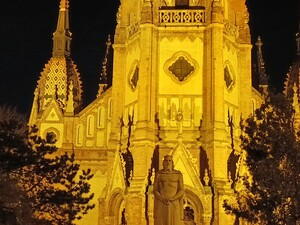 Nem különösebben jó, nem is tragikus a főkamera képe, a 108 MP-es felbontás viszont nettó felesleges. Több részlet nincs, vannak viszont képhibák, például az összes vonal mellett megjelenő kékes-lilás árnyék, az esti fotók esetén a homályos pontok, a rosszul beállított expozíció. Ezek egy részét, például az eltúlzott expót az algoritmus képes 12 MP-ben korrigálni, de így sem tökéletes az eredmény, és hiába az egész nagy méretű rekesz, ha nincs megfelelő zajszűrő algoritmusunk, így jó nappali fények mellett is találunk zajszemcséket a fotóinkon. A legnagyobb problémám mégis az, hogy a PDAF megbízhatatlan a főkamerában, a Budagyöngye homlokzatáról készült képeket többször újra kellett csinálni, mert egyszerűen nem találta meg a fókusz a megfelelő pontot, ha pedig kézzel a képernyőre nyomva próbáltam kijelölni egy adott részt, akkor totál elvesztett. Ugyanígy a sárgás színű ház sincs fókuszban a képeken, csak a háromszoros zoom esetén, ezeknél is az automatika teljesen megőrült és nem tudta beállítani magát rendesen. És itt kiemelném, hogy a matt bevonatú kijelző egyik hátránya, hogy nem látszik rajta egyértelműen fotózáskor vagy videózáskor, hogy mi van fókuszban!