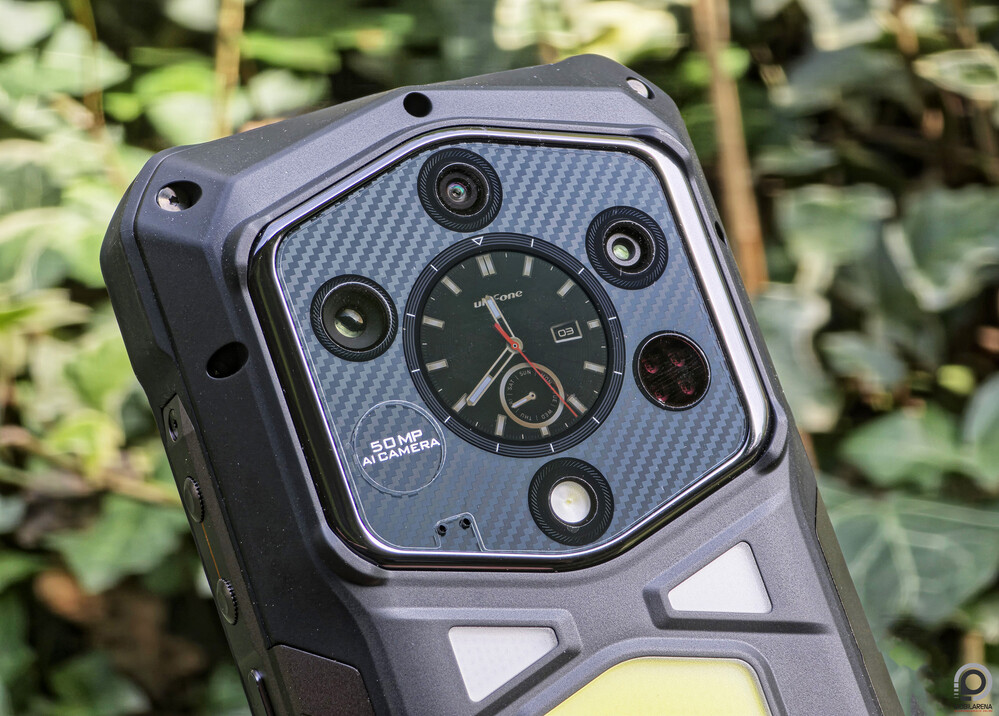 Alul pillantható meg a monó hangszóró és a fül kihajtása mögött az USB-C port 3.2-es átvitellel, felül a jack kimenet és az infra, amihez távirányító szoftver is dukál. Hátul normál és infravörös LED fénykollekció, 50 megapixeles normál és ultraszéles kamera, 64 megapixeles éjjellátó egység, piros és kék fénnyel világító vagy villogó megkülönböztető jelzés és 1000 lumen fényáramú, 5 wattos kempingfény lakozik.