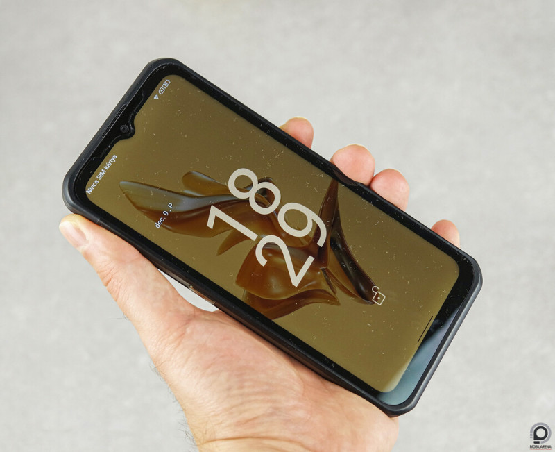 A mennyiségi elv persze nem garancia a minőségre, ám ott kezd a dolog ígéretes lenni, hogy vad, rücskös forma helyett letisztult dizájnt és éleket kapunk jó fogással, erős vázzal és kézre eső fémgombokkal. A programozható billentyű balra helyezkedik el és szimpla, dupla, illetve hosszú lenyomásra reagál. A hangerőszabályzó és a fürge ujjlenyomat-olvasós bekapcsoló jobbra tapintható ki – a gombok sávjában fémcsík erősíti az oldalakat. A 16 megapixeles kameracseppel tarkított, 6,58”-es panelt persze elég káva veszi körbe, hogy 172,7 x 80,4 x 12,5 milliméteren és 290 grammon az Armor 17 Pro kétkezes, bitang nagy féltégla legyen, ami deformálja a nadrágzsebet. Cserébe a takarékos hardverhez és a sokrétű töltéshez 5380 mAh-s óriástelep tartozik.