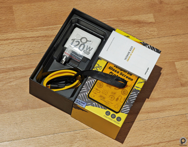 Van oldalt az endoszkópot és más külön tartozékokat befogadó uSmart 2.0 bemenet, USB-C és jack port, FM-rádió, infra, programozható és exponáló gomb, 10600 mAh-s gigatelep, 120 wattos vezetékes és 50 wattos vezetékmentes töltés, valamint fólia a telefonon. Bőkezű a csomagolás is: benne van a nagy teljesítményű USB PD / PPS adapter, a vastag töltőkábel, az edzett üveglap, a leírás, a SIM tű és az jobb alsó sarkon átfűzhető csuklóakasztó.