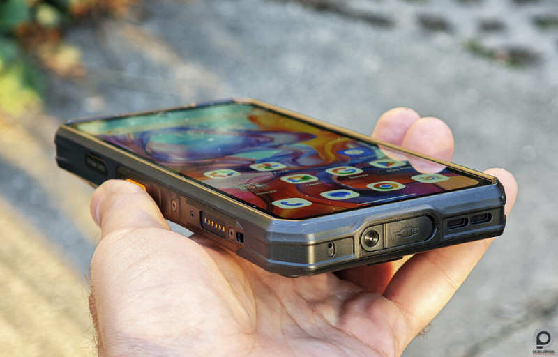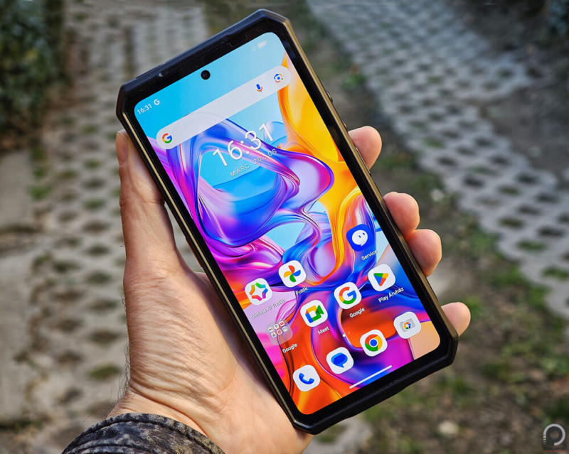 Külsőleg mondjuk csak a méretbe lehet belekötni: 174,15 x 83,6 x 19,4 milliméteren és 450 grammon az Armor 28 Ultra hozzánk került, éjjellátó változata rettentően nagy, fárasztó fogni és alig fér el a mélyebb farmerzsebbe szögletes és vaskos mivoltával. Kávából annyi van, amennyi a képernyővédelemhez szükséges, a perem a Gorilla Glass Victus üveglap fölé emelkedik, a 120 Hz-es képfrissítésre és az 1080 x 2400 pixeles képélességre 6,67”-en nem lehet panasz.