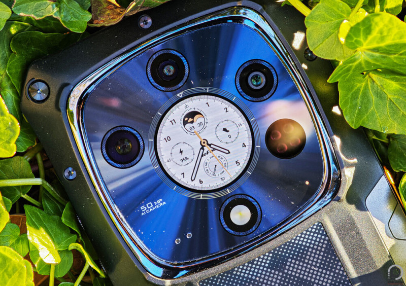 A bónusz az 50 megapixeles fő- és ultraszéles kamera, a 64 megapixeles éjjellátó egység, a hagyományos LED, a mikrofon és a négy infravörös fényű villanó között ezúttal nem erélyes hangszóró vagy kempinglámpa, hanem okosóra méretű, 1,04”-es, 340 x 340 pixeles, 60 Hz-es és Gorilla Glass Victussal védett másodlagos AMOLED kijelző.