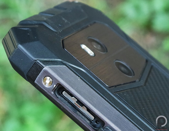 A phablet számos munkakörnyezetben használható, akár -40 és +80 Celsius-fok között, a promóképek szerint pedig még vízi kalandra is el lehet vinni, bár ez megint csak olyan, amit szívesen leteszteltünk volna a valóságban, ha épp szembe jön egy búvárkodási vagy szörfölési lehetőség. A gyártó hangsúlyozza: a microUSB és a jack port, valamint a gombok, a kamerák és a hangszórók is megbízhatóan kívül tartják a vizet, akárcsak a dupla nanoSIM vagy egy nanoSIM és egy microSD kártya befogadására alkalmas tálca a jobb oldalon, amit egy fül kihajtása után, körömmel és fájdalommal kell kipiszkálni.