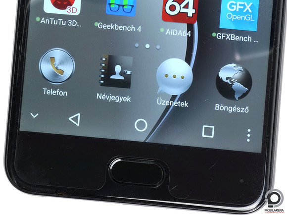 Az uleFone a Meizutól merített inspirációt, amikor a képernyő alatti nyomógombhoz rendelte mindhárom androidos alapfunkciót: visszalépni elvileg a megérintésével lehet, a főoldalra jutni a lenyomásával, hosszan rátelepedve pedig az alkalmazásváltó ugrik fel. A legelső azért „elvileg”, mert a vissza funkciót külön a beállítások közül kellett aktiválni, addig ugyanis a szimpla érintés nem csinál semmit. Ugyanitt ujjlenyomat-olvasó is van, érintéses alapon, katasztrofális hatékonysággal. Nem elég, hogy már bevitelkor érzéketlen marad minden harmadik érintésre, lassú is és le is kell nyomni a gombot az olvasás előtt, ha ki van kapcsolva a képernyő. Bevethető viszont alkalmazászároláshoz, és ha sikerül tényleg teljes egészében letakarni a felületet, akkor azért kevesebbszer téved.