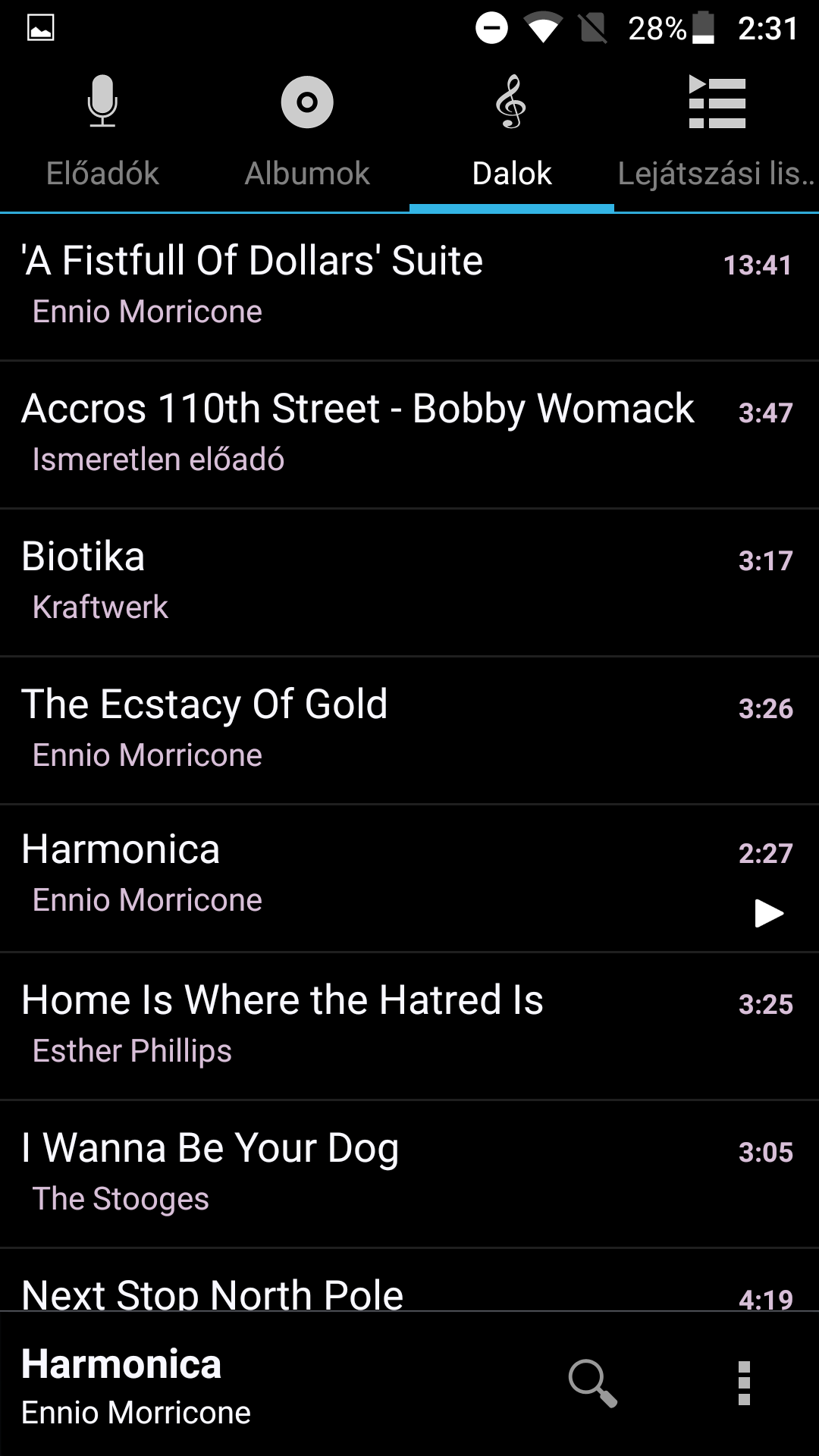Az AOSP-s zenelejátszó előadók, albumok, dalok és listák szerint rendszerezi az állományokat – a FLAC formátumot elviszi, a WMA-t nem. Akad hangszínszabályzó és FM-rádió is, füles csatlakoztatása után. A dobozban ilyesmi nem volt, viszont sajátunkat rádugva nagyjából az árszintet teljesítő minőség áradt ki a 3,5 milliméteres porton, azaz nem volt komolyabban észlelhető zaj vagy a frekvenciaátvitel megcsúszása. Inkább részletességben és dinamikában jut a fülre több a drágább mobilok esetében, illetve hangerőből. Ez pont nem probléma az alulra került, ezért könnyen eltakarható monó hangszórónál: átlag feletti erővel szól, viszont a maximumnál az énekhang és a hangszerek esetében is torzítva, berezonálva. 2-3 lépéssel érdemes mindjárt lejjebb szabályozni, és ha már a telefonnal babrál az ember, egy BS Playert is lehúzni, mert a gyári videolejátszó annyira fapados, hogy nem érdemes a hátsóval rátelepedni.