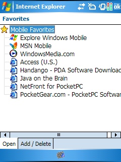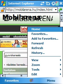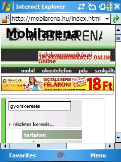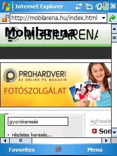 Van teljes képernyős mód, a képeket WM 5-nél pedig már le is lehet menteni (WM2003SE-nél erre csak külön plug-in telepítése után van lehetőség). A Kedvenceket egy gombnyomással, vagy akár softkey használatával is el lehet érni.