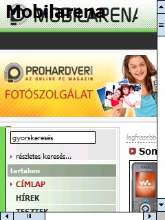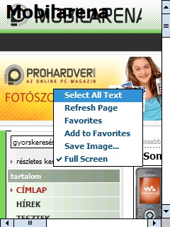 Teljes képernyős mód itt is van, a képeket is le lehet menteni. Mint azt már a bevezetőben is említettem, a NetFront az egyetlen böngésző, ami a JavaScript mellett a Flash-t is támogatja. Az ilyen elemeket is tartalmazó oldalak azonban sajnos nagyon igénybe veszik gépet, egy teljesen flash alapú lap például be sem jön, ha pedig már egy kevéske ilyen tartalom is van, akkor az egész oldal csak kínkeservesen töltődik be.