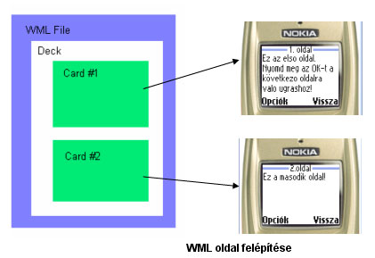 No, ha már eddig eddig eljutottunk kezdjünk is bele a WML megismerésébe. A WML (Wireless Markup Language) egy szigorúan definiált XML alapú leíró nyelv. A szigorúan definiálton leginkább azt lehet érteni, hogy meglehetősen kötött, például. érzékeny a kis és nagybetűkre, illetve „ha valamit elkezdesz , fejezd is be” formátumú. Ez a gyakorlatban leginkább annyit tesz, hogy a kezdő és záró tag-nek minden esetben meg kell lennie, szintaktikailag helyesen, nem maradhat el.