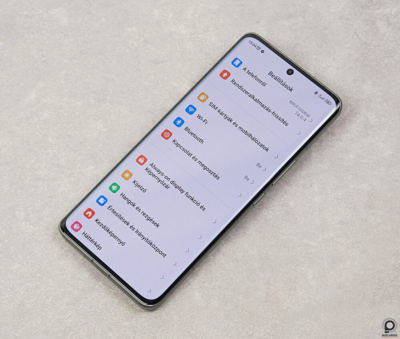 A tenyérbarát ívek ügyesen palástolják a jókora méreteket: 163,18 x 74,64 x 9,06 milliméteren és 227 grammon a telefon hatalmas, így a bal felső sarokba száműzött értesítőpanelt csak fogásváltással éri el a jobb hüvelykujj, a kameratárcsánál mért 16 mm-es vastagságot a termékoldal pedig nemes egyszerűséggel letagadja. A korongnál megtámasztva a mutatóujjat viszont kifejezetten kényelmes a fogás hosszútávon is, szemben a roppant csúszós Edge 40 Próval vagy a túl szögletes iPhone 14 Pro Maxszal, és a Xiaomi sem fukarkodik képernyőben. 6,73”-es képátlóval és 1440 x 3200 tűéles pixellel (alapból a rendszer FHD felbontáson fut), 12 bites színmélységgel és 1 - 120 Hz közötti, dinamikus képfrissítéssel, illetve Dolby Vision és HDR10+ támogatással az LTPO AMOLED panel lazán igazolja az óriás méretet.