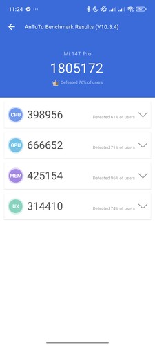 | Benchmark | Xiaomi 14T Pro | Motorola Edge 50 Ultra | Samsung Galaxy S24 Ultra | Nubia Red Magic 9 Pro | Google Pixel 9 Pro XL | Apple iPhone 15 |