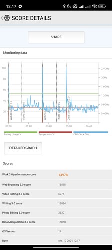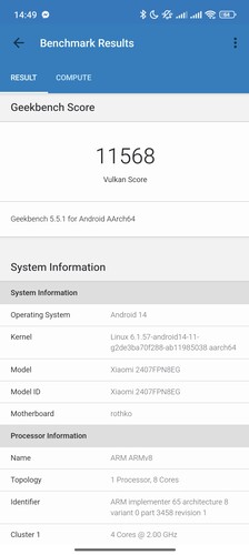 Számítási kapacitás és CPU stabilitás terén jól teljesít a telefon, a 12 GB LPDDR5x RAM elég mindenre, de így is engedne a rendszer az UFS 4.0-s tárhelyből lecsípni virtuális memória címén. Ez fölösleges. Forrósodást nem tapasztaltunk a telefonon, de a GPU-t is terhelő feladatok elvégzésének stabilitása elmarad a várttól, 50-60% közötti eredményeket produkál a telefon, és így is jelentősen emelkedik a belső hőmérséklete, akár 20 Celsius-fokkal is egy negyedórás teszt alatt. Ár-érték arányban mondjuk így is jobb ajánlat a Xiaomié a nyers teljesítmény tekintetében, mint mondjuk a Motorola Edge 50 Ultra, és a CPU a mediatekes 14T Próban több szálon mért teljesítménye időnként meg is előzi a Snapdragon 8 Gen 3-mal szerelt sima Xiaomi 14-et, de a grafikailag intenzív feladatokban rendszerint alább marad.