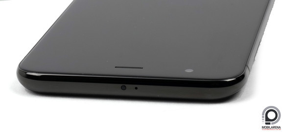 Az ujjlenyomat-olvasó totál tévedhetetlen, nem lehet olyan rossz szögből rányúlni, hogy ne ismerje fel a regisztrált mintázatot, ráadásul a kijelzőt sem szükséges felvillantani, az ujjlenyomatos azonosítás azonnal nyitja a készüléket. Mármint mindig, és a másodperc tört része alatt, a süllyesztett kivitelnek köszönhetően pedig vakon is képtelenség eltéveszteni. A felső káván a 8 megapixeles szelfikamera nyitja a sort, mellette a fény- és közelségérzékelő szenzor nem látszik, a minimalista beszédhangszórón kívül pedig a jobb sarokba egy szerény méretű és fényerejű értesítési LED került.