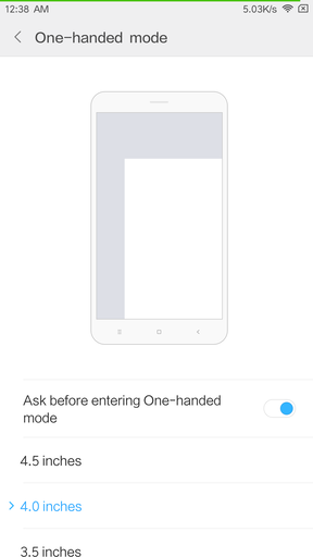 Akad egy kellemes képessége a rendszernek, ami újdonság, ez pedig az akkumulátor töltöttségi szintjének grafikus kijelzése a képernyő legtetején található színes csík formájában. Értelemszerűen faltól falig zöld csíkkal indul a dolog, majd ez arányosan csökken a telep maradék kapacitásának függvényében. Az értesítő LED sajnos csak egy színben képes értesíteni, ellenben beállíthatjuk, hogy pulzáljon is, plusz töltés közben nem okvetlenül kell világítania. A navigációs gombok sorrendjének módosíthatóságáról és érintési funkcióiról már megemlékeztünk, de ha átállítanánk valamit, azt is itt fogjuk tudni megtenni. Az egykezes mód a Home gombtól kiinduló mozdulattal aktiválható, ekkor maximum 3,5 hüvelykesre kicsinyíthetjük a kijelzőt, az alapbeállítás viszont 4 hüvelyk.