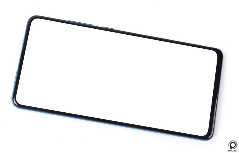 A tökéletes magasságban elérhető bekapcsológombnak meg külön jól áll az elütő piros szín. A fölötte lévő hangerőszabályzó már színben harmonizál a készülék többi részével. Alul két nanoSIM-et és nulla microSD kártyát befogadó SIM tálca, beszédmikrofon, hangszórófuratok és Type-C csatlakozó található, fent pedig nem csak a motorikusan kiemelkedő, LED-ekkel, speciális hangeffektekkel és automata visszahúzórendszerrel felszerelt előlapi kamera, de 3,5 milliméteres jack csatlakozó és zajszűrő mikrofon is elfért.