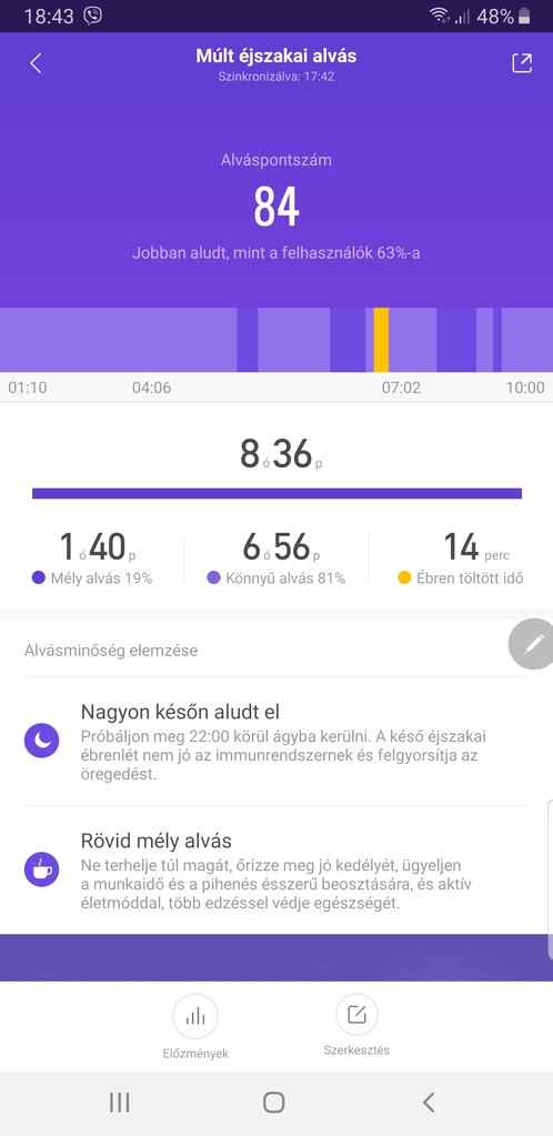 Az alvásmonitorozás továbbra is jól működik és egészen pontosnak tűnik, az órát pedig teljesen le lehet csendesíteni a pihenés időtartamára. A kéz megemelésével történő ébresztés letiltását külön menüpontban időzíthetjük. Sajnos a csatlakoztatott készülék Ne zavarjanak üzemmódját nem szinkronizálja, de az appban megadható fix időtartam, vagy bekapcsolható manuálisan is. Az ébresztéseket is az appban állíthatjuk be, majd az órán kapcsolgathatjuk, hogy adott napon melyik lesz a nyerő. Én személy szerint kényelmesen felébredek a rezgésre, a PH!-s kolléga nem, szóval a rezgés erősségének vagy elégségességének megítélése elég szubjektív.