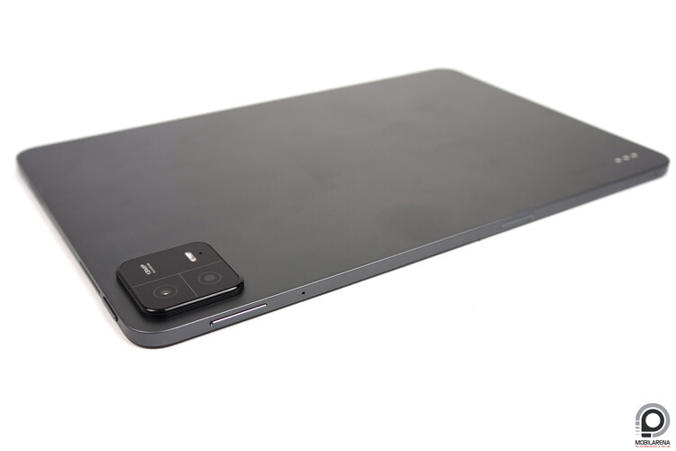 A hátlap üres, leszámítva a sarokba kitolt kameraszigetet. Ez ad otthont a hátlapi 13 megapixeles szenzornak, mellette van még egy LED villanó, így kissé feleslegesen nagynak tűnik a kamerasziget. A Pad 6 Pro modelljében van másodlagos kamera, valószínűleg itt is a költségcsökkentés miatt nem variáltak az alapmodellnél a hátlappal és maradtak inkább az üresen hagyott helynél. Két éve, a Xiaomi Pad 5-nél is ez volt.